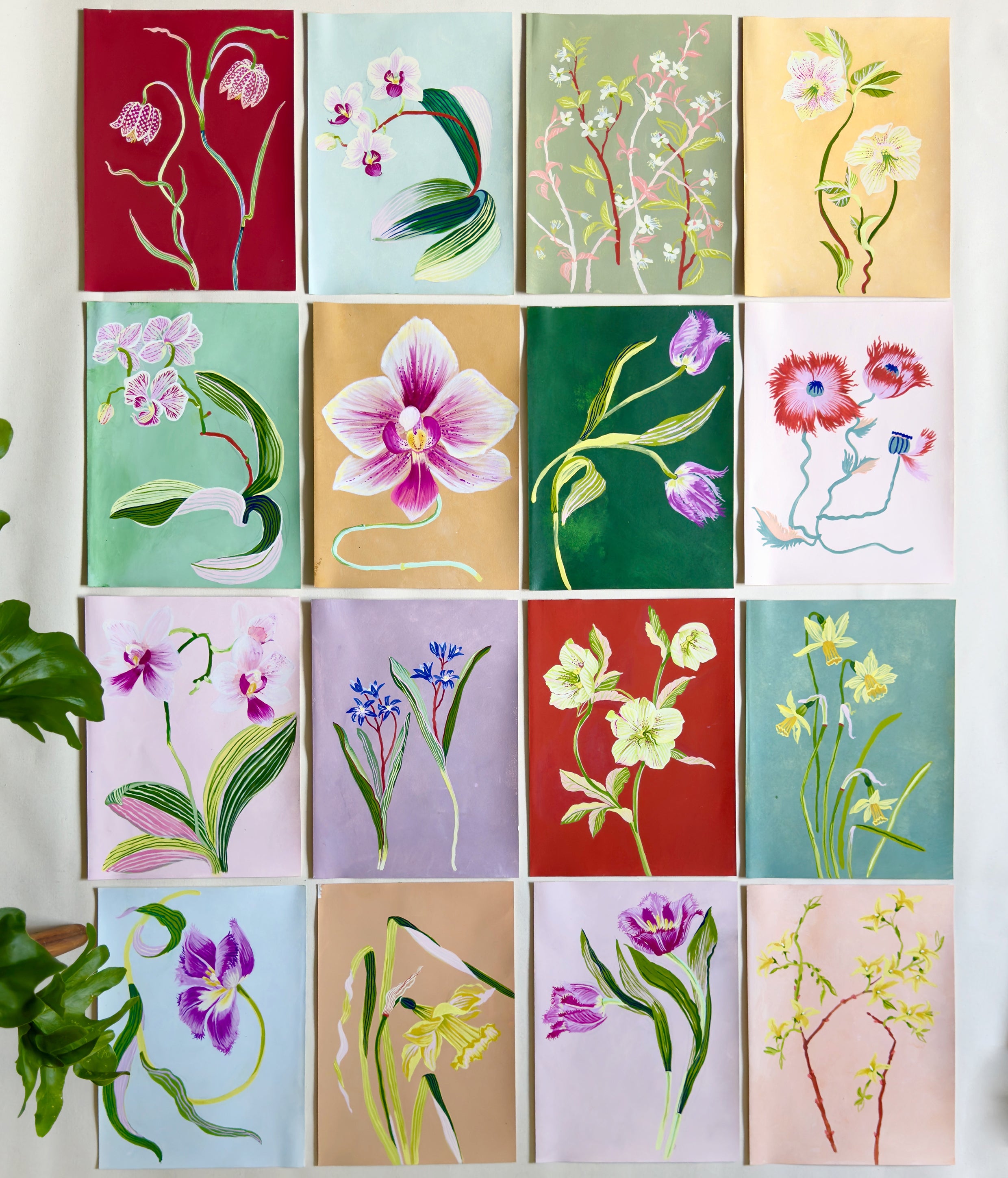 Sarah Gordon is a British artist and designer working from her coastal home studio on Bainbridge Island, WA. She is known for her curious, contemporary artwork that brings together botanicals, insects and birds with seaweed, coral and other natural elements. Her bold incorporation of contrasting colour and mark making is influenced by the simplicity of modern art combined with her love for quirky antique botanical illustrations creating a unique view into nature.