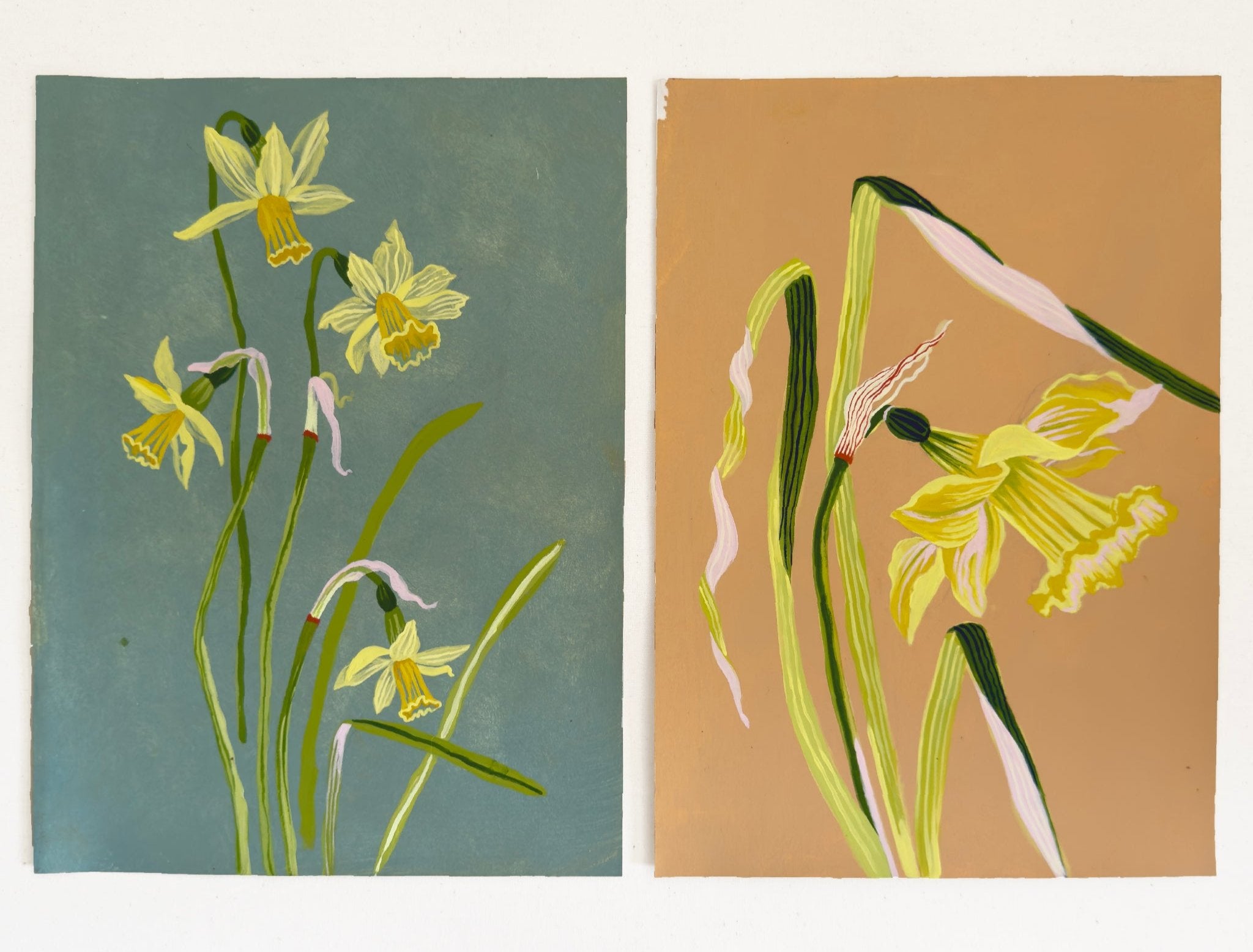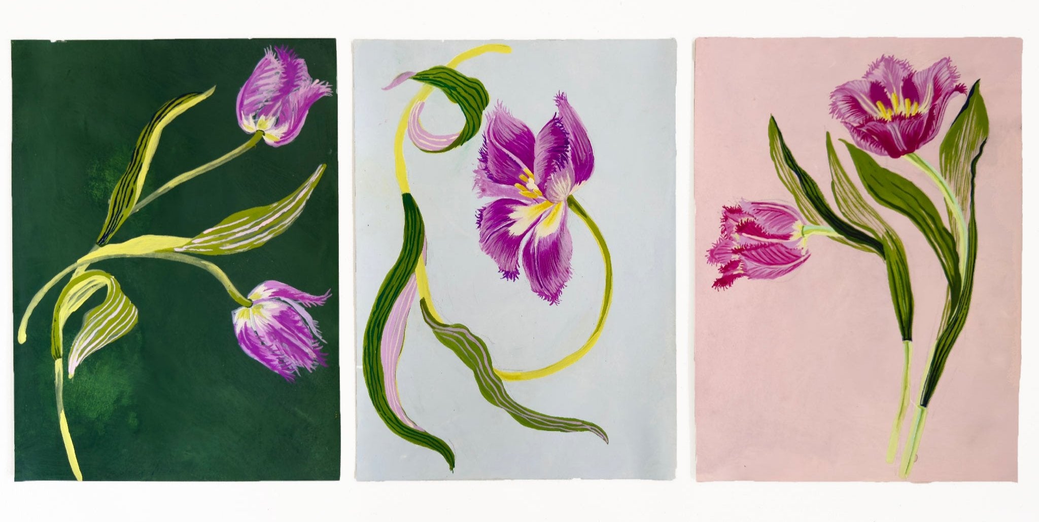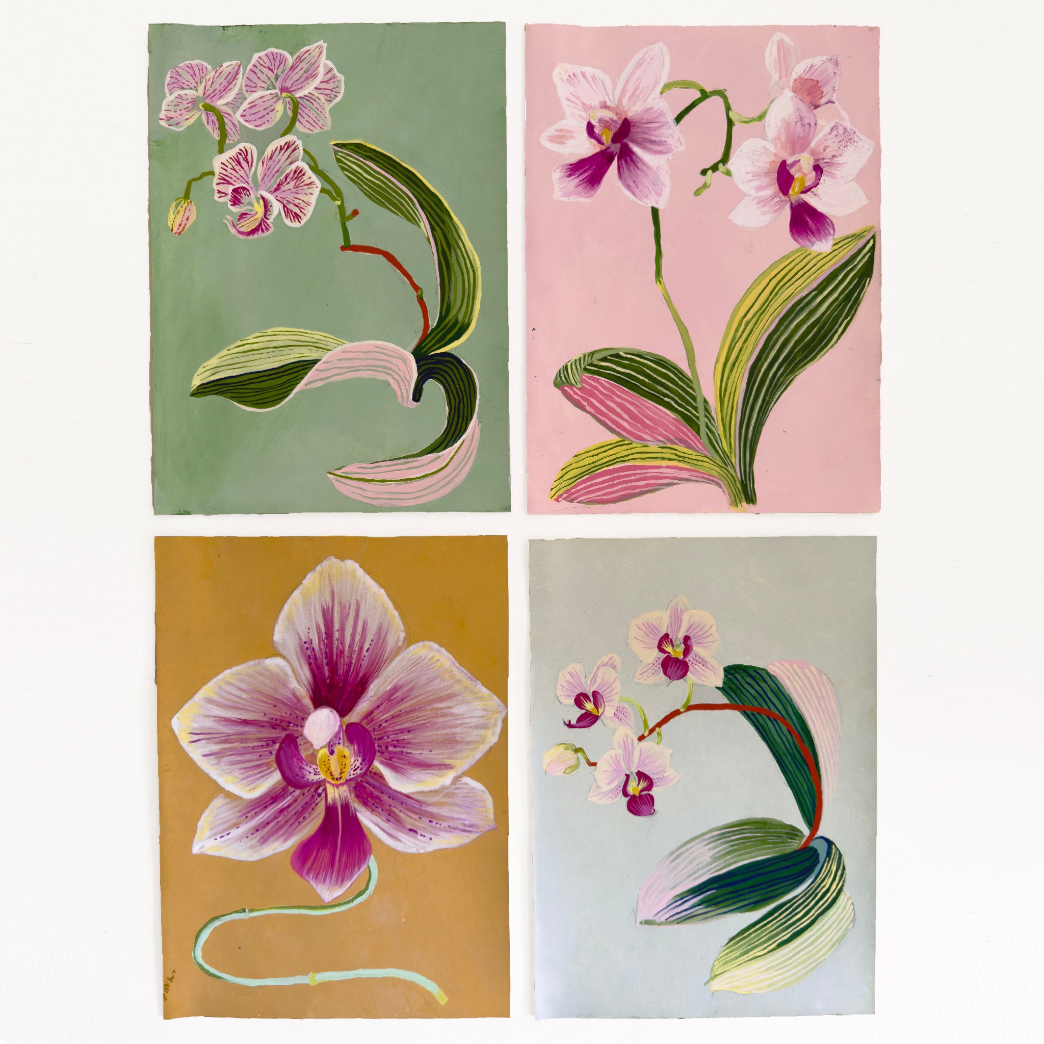 I loved working on varying colored grounds that sit beautifully together in coordinating sets. I hope that you will enjoy these as much as I did while painting.